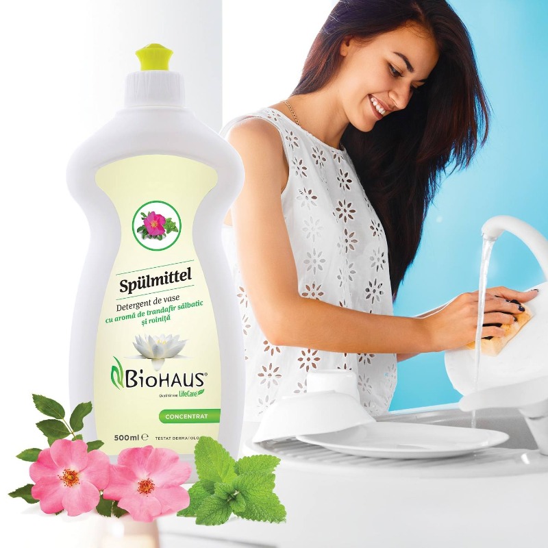 Detergent pentru vase cu aroma de trandafir salbatic si roinita BioHAUS®